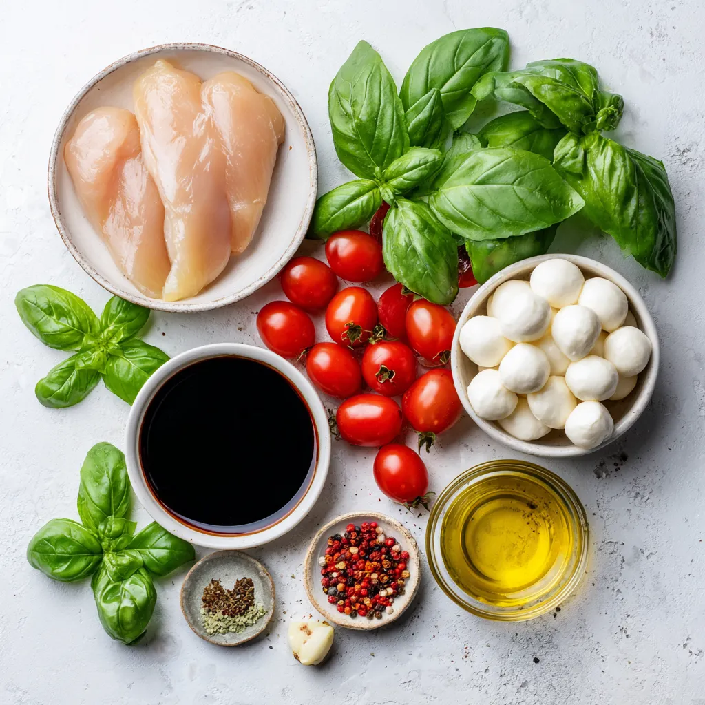 To make Balsamic Glazed Caprese Chicken, gather these simple ingredients. Each one plays a key role in creating rich flavors. The chicken breasts serve as the base, while cherry tomatoes add some sweetness. Fresh mozzarella brings creaminess, and basil adds a fresh touch. The balsamic glaze ties everything together with a tangy sweetness. Garlic enhances the aroma, and olive oil helps with cooking. You can add salt, pepper, and red pepper flakes for extra flavor.