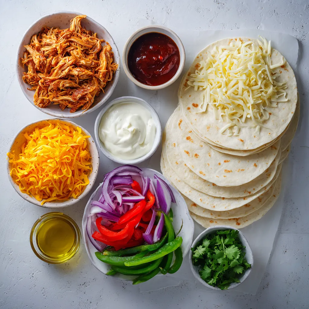 These ingredients create a tasty flavor mix. You can adjust the BBQ sauce to suit your taste. Use mild sauce for kids or spicy for adults. The ranch dressing adds a creamy touch. The blend of cheddar and mozzarella gives the quesadillas a cheesy goodness. You can add your favorite vegetables to make it even better! Enjoy the simple prep and delicious outcome.