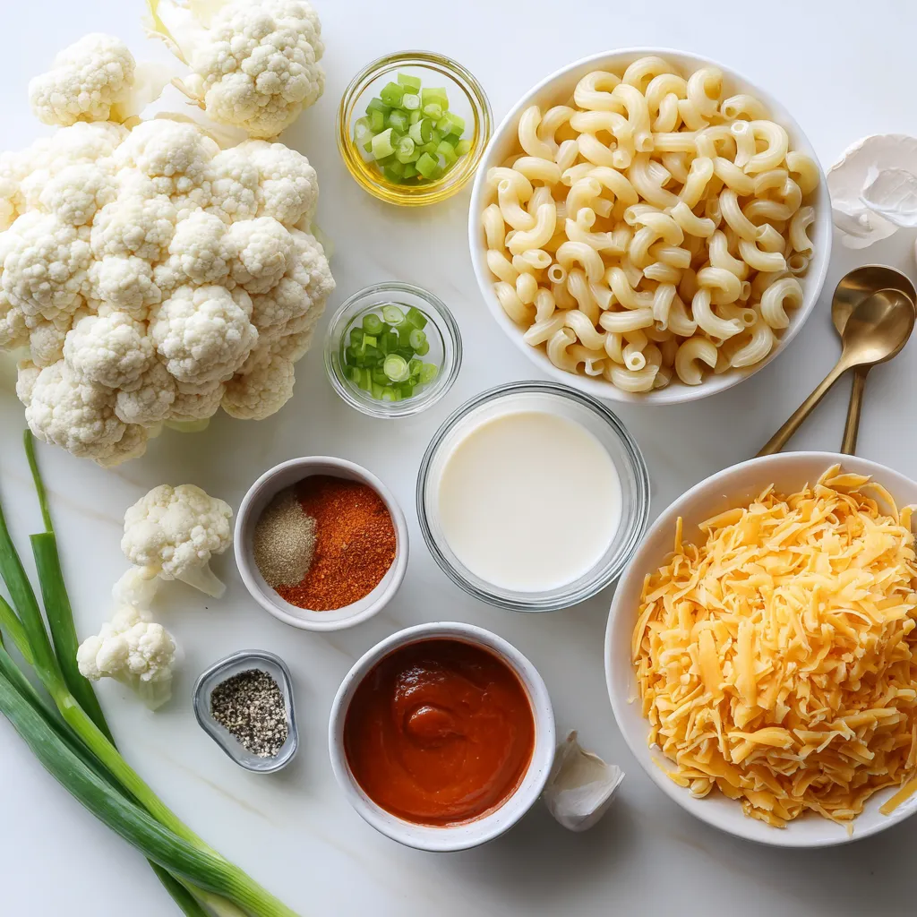 Buffalo cauliflower mac and cheese starts with fresh ingredients. Cauliflower florets add a great texture and a mild taste. They soak up flavors very well. The elbow macaroni gives the dish its classic feel. If you’re gluten-free, use gluten-free pasta. The cheese is where the magic happens. You can use sharp cheddar for a bold taste or vegan cheese for a plant-based twist.