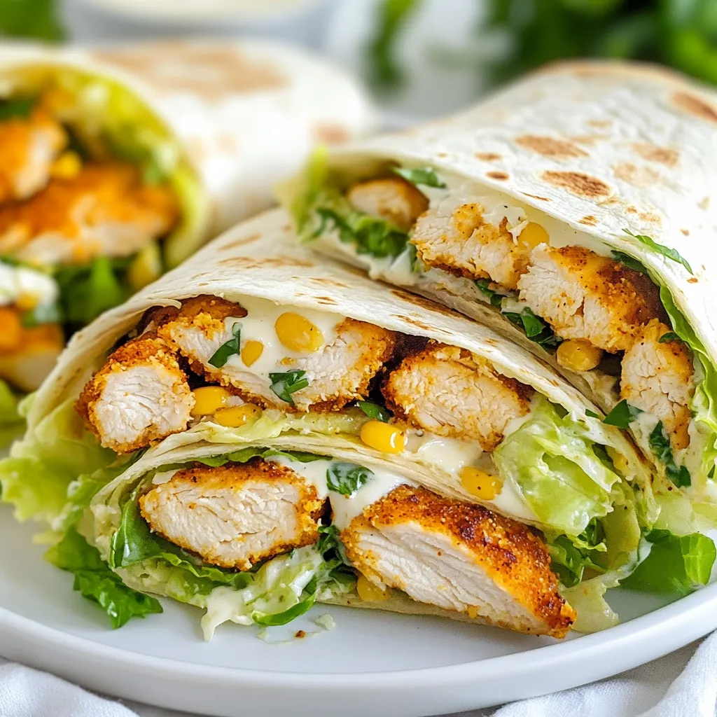 To make these wraps, you need a few key items: - 2 boneless, skinless chicken breasts - 2 tablespoons Cajun seasoning - 1 tablespoon olive oil - Salt and pepper to taste - 4 large flour tortillas - 2 cups Romaine lettuce, chopped - 1/2 cup Caesar dressing - 1/2 cup Parmesan cheese, grated These ingredients create a tasty mix. The chicken gets a spicy kick from the Cajun seasoning. The lettuce and cheese add crunch and creaminess. For the best flavor, use Cajun seasoning. It packs heat and depth. You should also add salt and pepper. These bring out the taste of the chicken. Feel free to adjust the seasoning to your liking. If you love spice, add more Cajun seasoning. You can enhance your wraps with a few extras: - 1/4 cup croutons, crushed (optional) - Fresh parsley, chopped for garnish Croutons add a nice crunch. They balance the soft chicken and salad. Chopped parsley makes the wraps look bright and fresh. These little touches can make a big difference! {{ingredient_image_1}} To start, you need to cook the chicken. First, preheat your grill or grill pan over medium-high heat. Grab your two boneless, skinless chicken breasts. Season them well with Cajun seasoning, salt, and pepper. Make sure to coat them evenly. Next, drizzle olive oil on the grill. Place the chicken on the grill and cook for about 6-7 minutes on each side. You want the chicken to be fully cooked and reach 165°F (75°C). After cooking, let the chicken rest for a few minutes. This helps keep it juicy. Now, slice the chicken into thin strips for easy wrapping. Now that your chicken is ready, it’s time to assemble the wraps. In a large bowl, mix 2 cups of chopped Romaine lettuce, 1/2 cup of Caesar dressing, and 1/2 cup of grated Parmesan cheese. Toss the mixture until the lettuce is well coated with dressing. Lay out your four large flour tortillas. In the center of each tortilla, evenly distribute the Caesar salad mixture. Top your salad with the sliced Cajun chicken. If you like, sprinkle crushed croutons on top for extra crunch. Now, roll up each tortilla tightly. Remember to fold in the sides as you go to create a neat wrap. Once finished, slice each wrap in half diagonally. Arrange them on a serving platter, and garnish with chopped parsley for a pop of color. These wraps make a great meal for lunch or dinner. Serve them with a side of fresh fruit or a light salad for a balanced meal. You can also pair them with extra Caesar dressing for dipping. This way, you can enjoy every bite! For a fun twist, try using different toppings, like avocado or sliced tomatoes. The options are endless! To cook chicken just right, start with good seasoning. I use Cajun seasoning, salt, and pepper. Coat the chicken breasts evenly. Heat your grill or pan to medium-high. Add a splash of olive oil to keep things from sticking. Place the chicken on the grill and cook for 6-7 minutes on each side. Use a meat thermometer to check for 165°F (75°C). Let the chicken rest before slicing. Resting keeps the juices inside. When wrapping, lay your tortilla flat. Place the filling in the center, leaving space at the edges. Start by folding in the sides. Next, roll the tortilla tightly from the bottom up. This helps keep all the tasty bits inside. If you want, you can use a toothpick to hold it together. It makes for neat serving and easy eating. To keep your wraps fresh, wrap them in plastic wrap or foil. This helps avoid sogginess. Store them in the fridge if you’re not eating them right away. For the best taste, eat them within a day. If you want to save them longer, consider freezing. Just remember to thaw them in the fridge before eating. This way, you enjoy that crispy texture. Pro Tips Marinating the Chicken: For an extra flavor boost, marinate the chicken in Cajun seasoning and olive oil for at least 30 minutes before grilling. Grill Marks: To achieve beautiful grill marks, avoid moving the chicken around too much while cooking. Let it sear before flipping. Fresh Ingredients: Using fresh Romaine lettuce and homemade croutons can elevate the taste of your wraps significantly. Wrap Tight: When rolling the tortillas, make sure to keep them tight and fold in the sides to prevent the filling from spilling out. {{image_2}} You can swap chicken for shrimp or tofu in this wrap. Shrimp adds a sweet taste. Just grill or sauté it with Cajun spices. Tofu is great for a plant-based meal. Press and cube the tofu, then marinate it in the Cajun seasoning. Cook until golden, and it will soak up all that flavor. For a vegetarian wrap, use grilled vegetables instead of meat. Bell peppers, zucchini, and mushrooms work well. Just toss them in olive oil and Cajun seasoning before grilling. If you want a vegan option, skip the Caesar dressing and cheese. Use a vegan mayo or tahini dressing instead. It keeps everything creamy and delicious. You can play with different spices to change the flavor. If you like heat, add more cayenne pepper. For a smoky taste, try smoked paprika. You can also mix in Italian herbs for a twist. Experimenting with spices makes your wraps exciting and personal. Don't be afraid to get creative! To store leftover Cajun Chicken Caesar wraps, keep them in an airtight container. This helps to keep the wraps fresh. You can also wrap them in plastic wrap. Make sure to place the wraps in the fridge. They stay good for about 2 to 3 days. If you notice any sogginess, use a paper towel to help absorb extra moisture. If you want to save wraps for later, freezing is a great option. First, wrap each wrap tightly in plastic wrap. Then, place the wrapped wraps in a freezer bag. Squeeze out as much air as you can to avoid freezer burn. They can last up to 2 months in the freezer. When you are ready to enjoy, thaw them in the fridge overnight before reheating. Reheating your Cajun Chicken Caesar wraps can bring back their great taste. You can use a microwave for quick reheating. Place a wrap on a microwave-safe plate and cover it with a damp paper towel