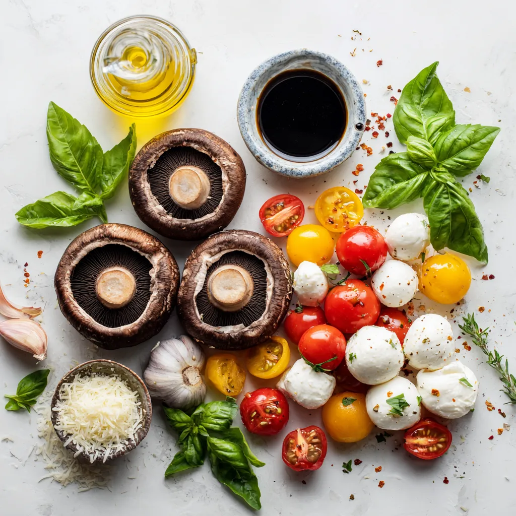 To make Caprese stuffed portobellos, you need fresh ingredients. Start with large portobello mushrooms. These mushrooms are meaty and hold flavors well. Next, grab cherry tomatoes. They add sweetness and color. Fresh mozzarella balls bring creaminess. Use basil for a fresh, herby taste.