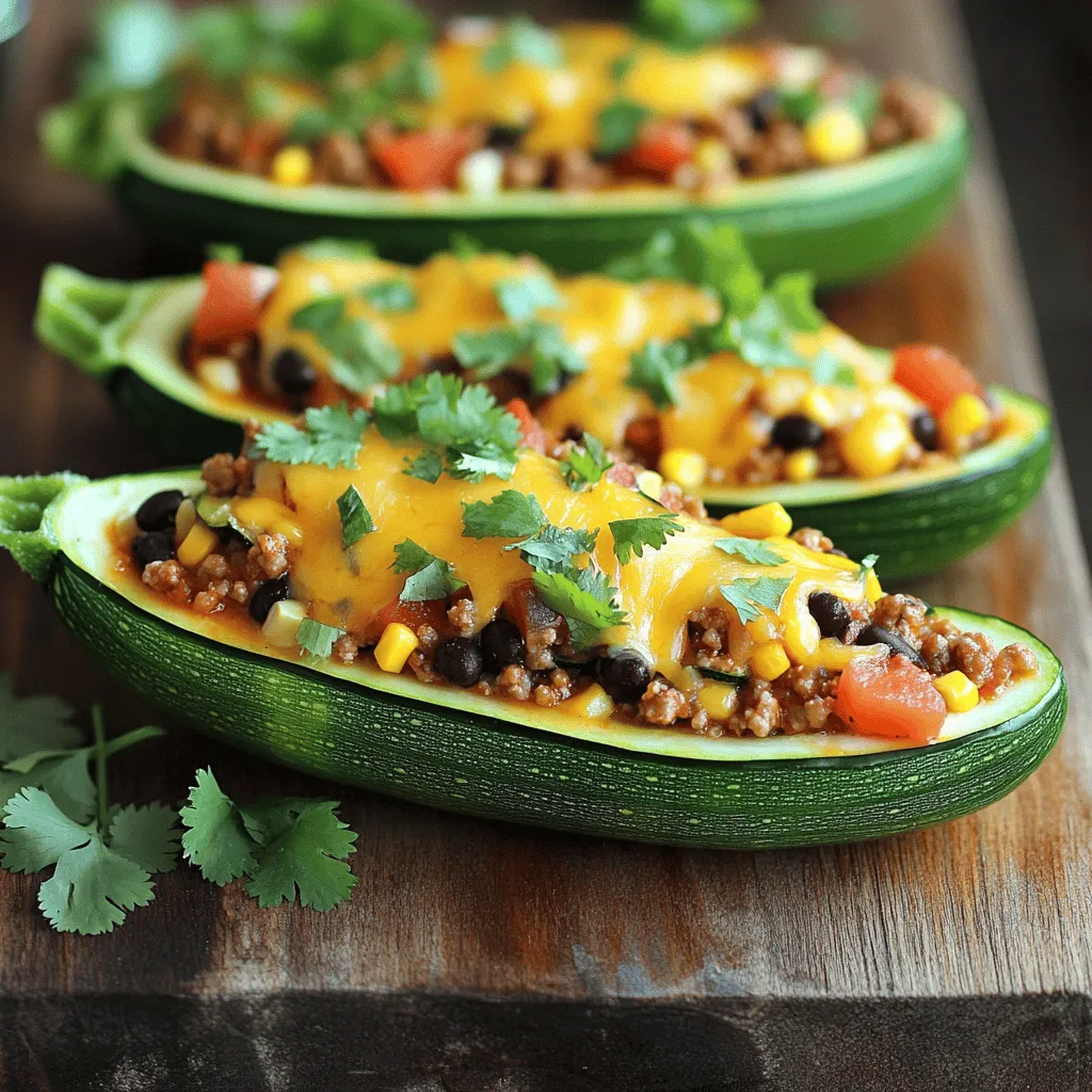 You can add a few fun garnishes to enhance your dish. Fresh cilantro adds a nice touch. A dollop of sour cream gives creaminess and cools the spices. You can also sprinkle some extra cheese on top for added flavor. Enjoy your cheesy taco stuffed zucchini with these tasty extras!