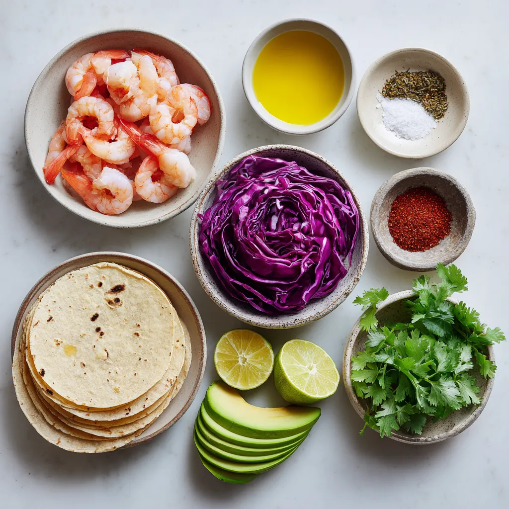 These ingredients come together to create a zesty and fresh meal. The shrimp provide protein, while the spices add flavor. The lime juice gives a bright twist, and the tortillas hold everything perfectly.