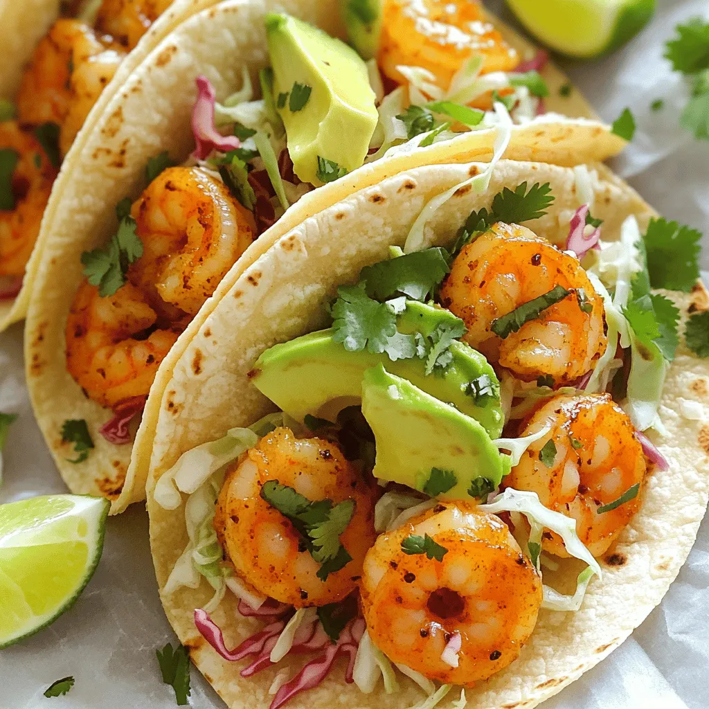 - 1 lb (450g) large shrimp, peeled and deveined - 2 tablespoons olive oil - 2 tablespoons chipotle in adobo sauce, minced - Zest and juice of 1 lime - 1 teaspoon ground cumin - 1 teaspoon smoked paprika - 1/2 teaspoon garlic powder - Salt and pepper to taste - 8 small corn tortillas - 1 cup shredded cabbage (red or green) - 1 avocado, sliced - Fresh cilantro leaves for garnish - Lime wedges for serving Chipotle Lime Shrimp Tacos are full of flavor. Here’s a closer look at the ingredients. First, you need shrimp. I use large shrimp for this recipe. They provide a nice bite and hold up well when cooked. You will want to coat them in olive oil. This helps the spices stick and adds a rich taste. The chipotle in adobo sauce gives the shrimp a smoky kick. It adds heat and depth. Mince it to release more flavor. Lime is key in this dish. You’ll use both the zest and juice. This boosts freshness and adds a tangy note. Cumin and smoked paprika add warmth. Cumin has a nutty flavor, while smoked paprika adds a subtle smokiness. Garlic powder brings in a savory taste. It complements the shrimp perfectly. Salt and pepper finish the seasoning. They enhance all the flavors in the dish. For the tacos, use small corn tortillas. They are soft and hold everything together well. Cabbage adds crunch. You can use red or green cabbage for color. Avocado brings creaminess to balance the spices. Slice it for easy layering. Fresh cilantro adds brightness and flavor. It’s the perfect garnish for your tacos. Lime wedges are a must. Squeeze them over the tacos for that extra zing. - Additional toppings (sour cream, hot sauce, etc.) - Variations on the shrimp seasoning Feel free to add your favorite toppings. Sour cream or hot sauce can enhance the flavor. You can also play with the seasoning on the shrimp. Try different spices to match your taste! To start, mix the shrimp with olive oil and spices. In a medium bowl, add: - 1 lb (450g) large shrimp, peeled and deveined - 2 tablespoons olive oil - 2 tablespoons chipotle in adobo sauce, minced - Zest and juice of 1 lime - 1 teaspoon ground cumin - 1 teaspoon smoked paprika - 1/2 teaspoon garlic powder - Salt and pepper to taste Toss the shrimp until they are well coated. For the best flavor, allow the shrimp to marinate for at least 15 to 30 minutes. This lets the spices soak in. You can cook the shrimp using a grill or a skillet. Both methods work well. Preheat your grill or skillet over medium-high heat. Once hot, add the shrimp in a single layer. Cook them for about 2-3 minutes on each side. Look for them to turn pink and opaque. That means they are done! Remove them from the heat. Now it's time to put your tacos together! First, warm the corn tortillas. You can do this in a dry skillet or on the grill. Heat them for about 30 seconds on each side until they are pliable. On each tortilla, add a handful of shredded cabbage. This adds crunch and freshness. Then, place a generous amount of the grilled shrimp on top. Add a few slices of avocado and garnish with fresh cilantro leaves. For a zesty touch, serve with lime wedges on the side. Squeeze fresh lime juice over the tacos just before eating for extra brightness. To make your Chipotle Lime Shrimp Tacos shine, adjust the seasoning to your taste. If you love heat, add more chipotle. If you prefer milder flavors, use less. Lime is key for balance. It adds a bright taste that cuts through the richness of the shrimp. The zest and juice work together to enhance every bite. Shrimp cooks quickly, so watch it closely. To prevent overcooking, remove it from the heat when it turns pink and opaque. This usually takes just 2-3 minutes per side. For a nice charred flavor, preheat your grill or skillet well. A good sear adds depth and smokiness to your tacos. Pair your tacos with fresh sides to complete the meal. Try serving with cilantro lime rice or black beans. For a refreshing twist, add a side of mango salsa. To present your tacos like a pro, stack them neatly on a plate. Garnish with lime wedges and cilantro leaves to impress your guests. {{image_2}} If you want to switch up the protein, chicken works great. Use boneless chicken thighs or breasts. Just marinate them like the shrimp. Grill until they are cooked through. Tofu is also a solid choice. Use firm tofu, pressed to remove moisture. Cut it into cubes and marinate it in the same chipotle mix. Grill or sauté until golden brown. For vegetarians, black beans or lentils can be tasty. They add protein and fiber. Mix them with lime juice and spices for extra flavor. You can play with spice mixes too. Try adding chili powder or cayenne for heat. For a milder taste, paprika or oregano works well. Incorporating seasonal vegetables makes the tacos fresh. Grilled corn adds sweetness. You can also use diced bell peppers or zucchini. They add color and crunch. Corn tortillas are classic, but flour tortillas work too. They are soft and easy to fold. Just warm them up in a skillet. For a lighter option, use lettuce wraps. They are crisp and low-carb. Iceberg or romaine lettuce holds the ingredients well. If you're gluten-free, look for gluten-free tortillas. Many brands offer tasty options that are easy to find. To store leftovers, place the shrimp and toppings in an airtight container. Keep the shrimp separate from the tortillas to maintain texture. You can enjoy your shrimp tacos for up to 2 days in the fridge. After that, the shrimp may lose its fresh taste. For freezing, wrap the shrimp tightly in plastic wrap, then place it in a freezer bag. This helps prevent freezer burn. You can also freeze the shredded cabbage and sliced avocado separately. To thaw, move the shrimp to the fridge overnight. This method preserves the taste and texture best. When reheating shrimp, use a skillet over low heat. This helps keep the shrimp moist and tender. Avoid high heat, as it can make them tough. For tortillas, warm them in a dry skillet for about 30 seconds on each side. This keeps them 