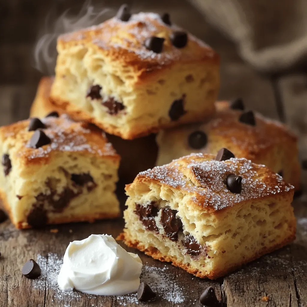 Chocolate chip scones pair well with clotted cream or butter. A sprinkle of powdered sugar adds a sweet touch. You can also serve them with fresh berries for color.