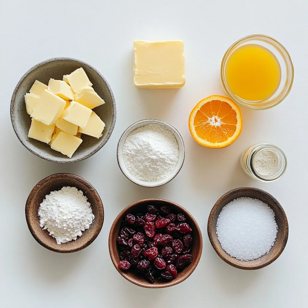 List of Ingredients for Cranberry Orange Shortbread Bars