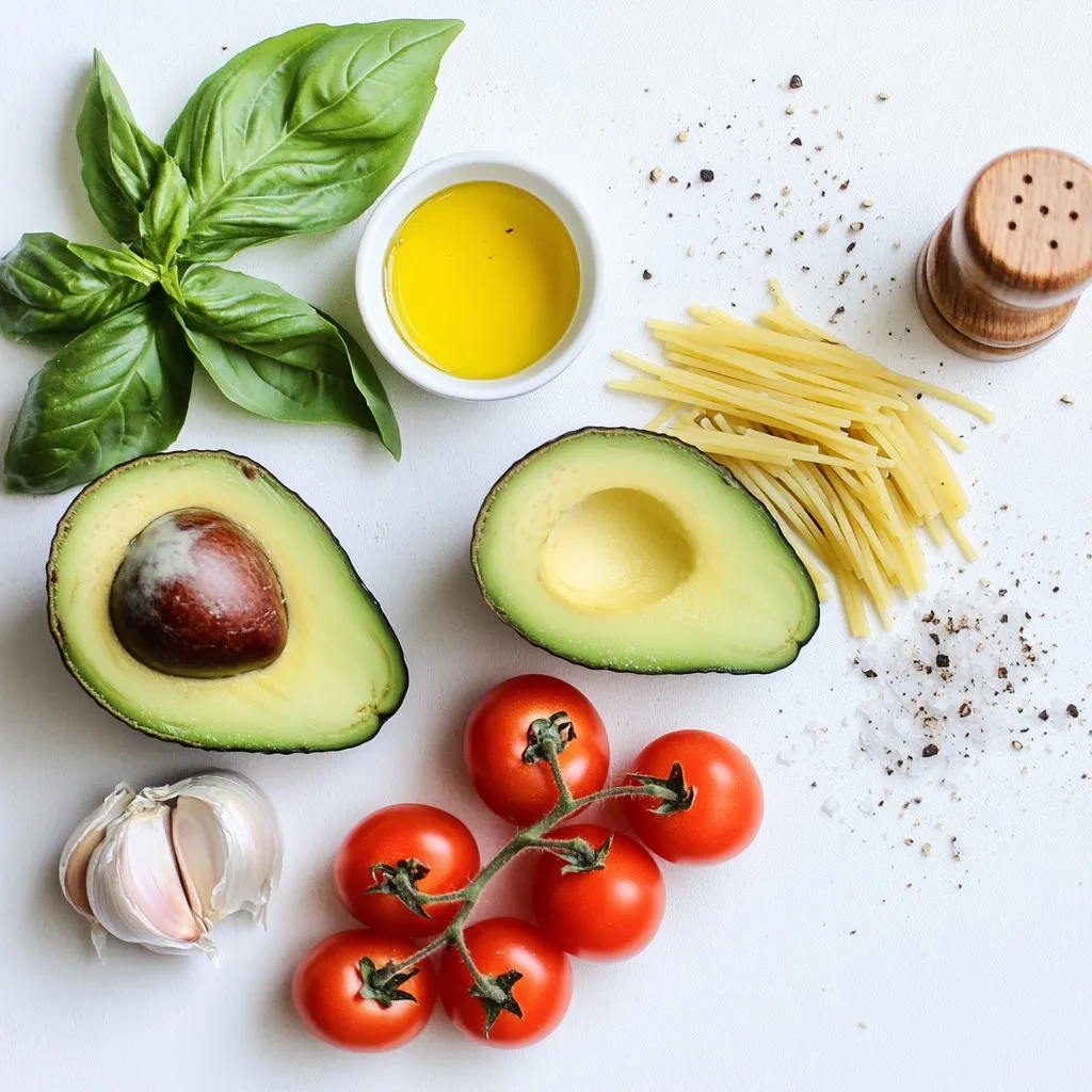 To make creamy avocado pasta, gather these fresh ingredients. The ripe avocados give it a rich flavor. The garlic adds a nice kick. Fresh basil brings a pop of color and taste. You can add Parmesan cheese for a savory touch. Olive oil enhances the creaminess. Don’t forget to use salt and pepper to taste. Finally, the cherry tomatoes add freshness when serving.