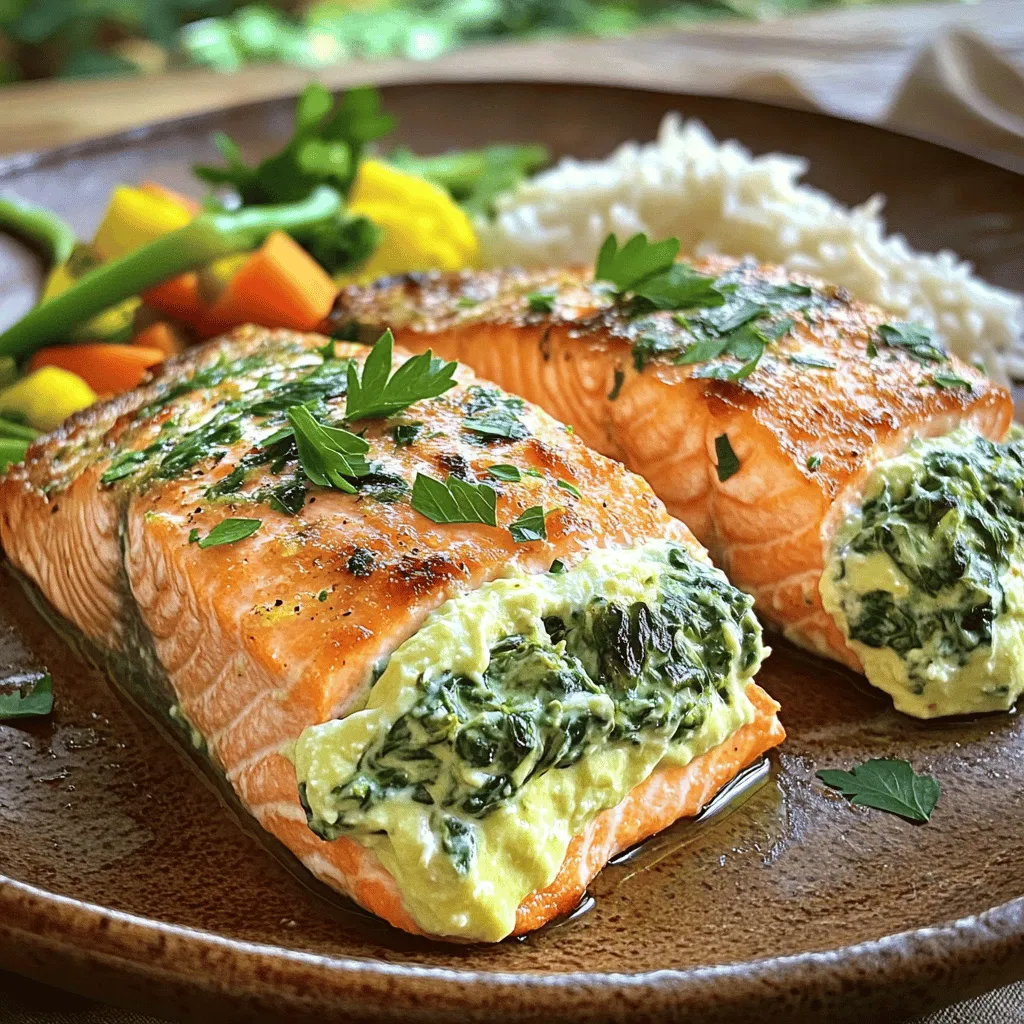 These ingredients come together to create a creamy, savory filling that pairs perfectly with the salmon. The spinach brings color and nutrients, while the cream cheese and Parmesan add richness.