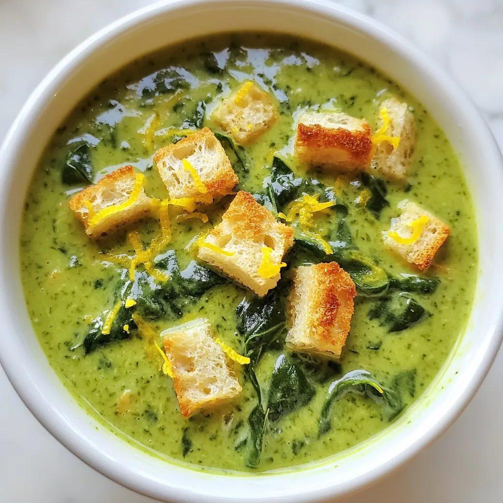 A delicious and creamy soup featuring fresh spinach and a hint of lemon.