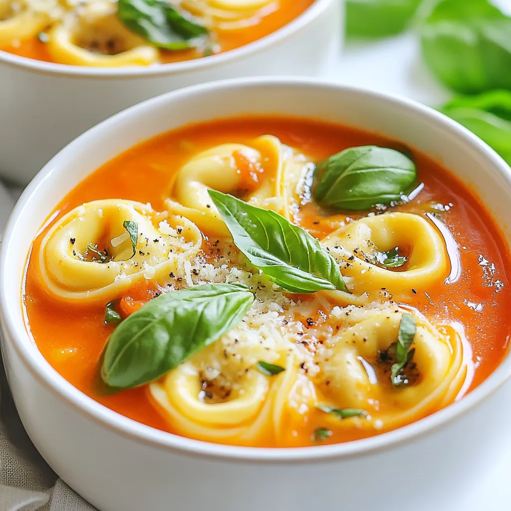A delicious and creamy soup featuring tortellini, tomatoes, and fresh basil.