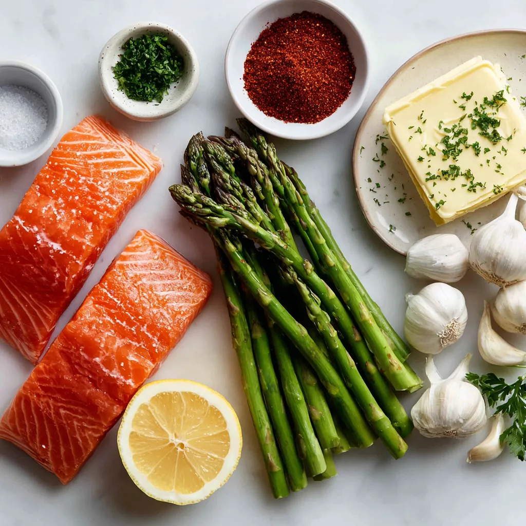 Main Ingredients for Garlic Butter Salmon and Asparagus