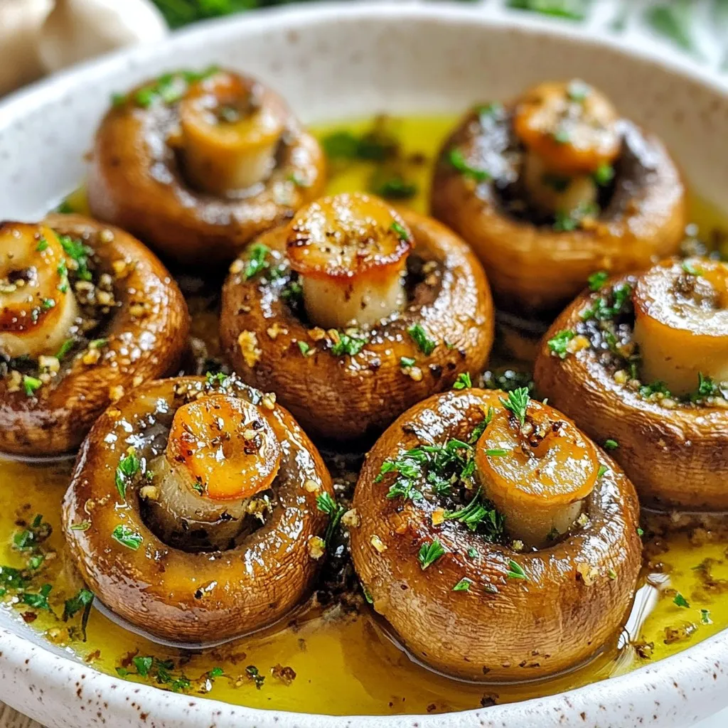 Delicious roasted button mushrooms infused with garlic and fresh herbs.