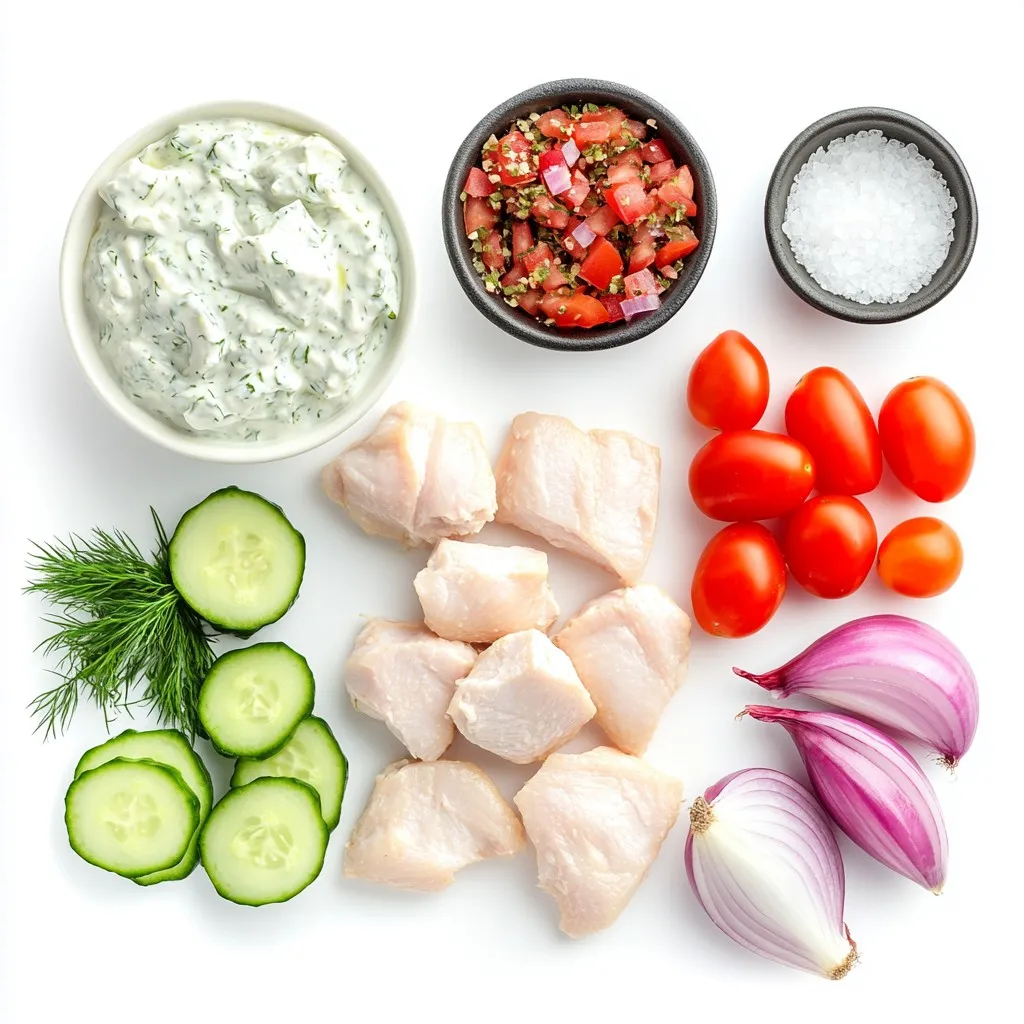 For the chicken marinade, I use just a few simple ingredients. First, I take boneless, skinless chicken breasts, which are perfect for this dish. I add olive oil to keep the chicken juicy. Next, I sprinkle dried oregano for that classic Greek flavor. Garlic powder adds a nice kick, while salt and pepper bring everything together. This marinade makes the chicken tasty and tender.