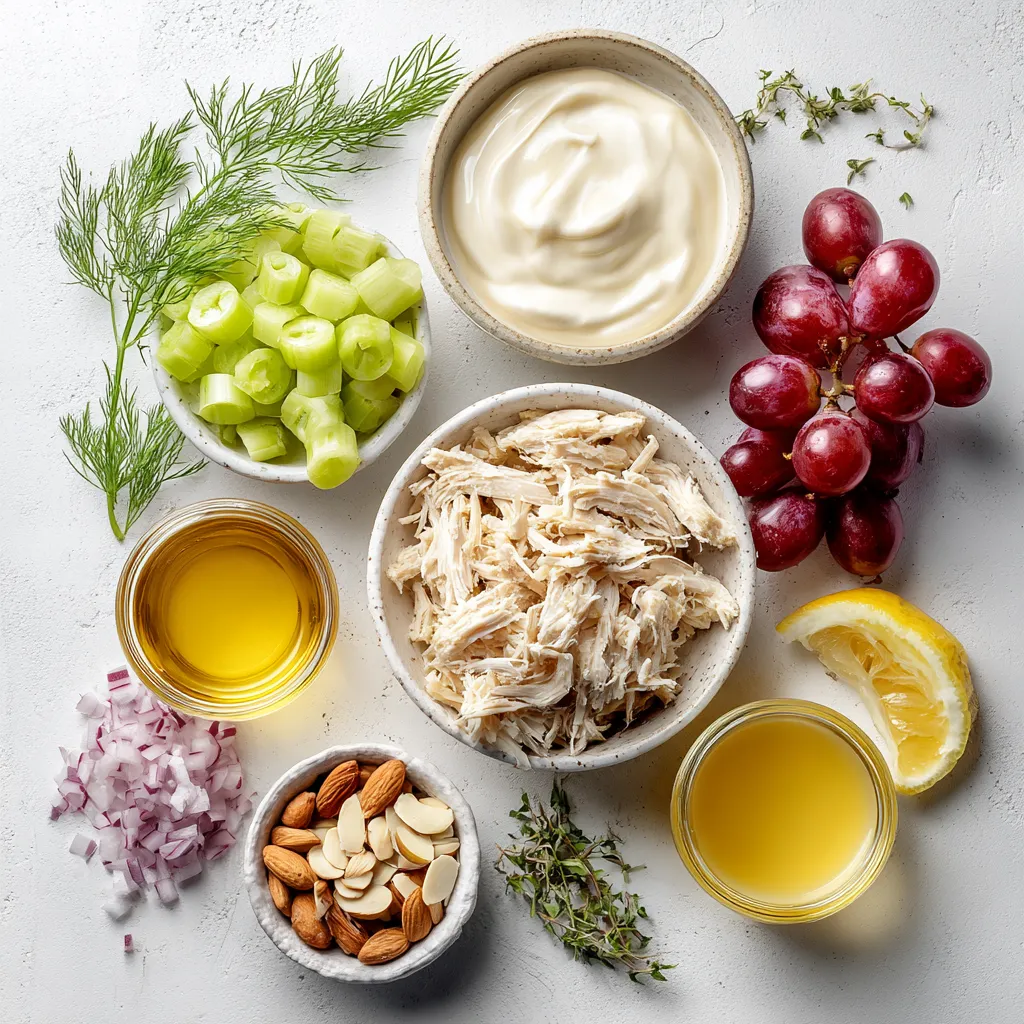 For this Greek yogurt chicken salad, you’ll need simple and fresh items. The star of the dish is cooked chicken breast, which I shred to make each bite tender. Greek yogurt takes the place of heavy mayo, giving a creamy texture without all the fat.