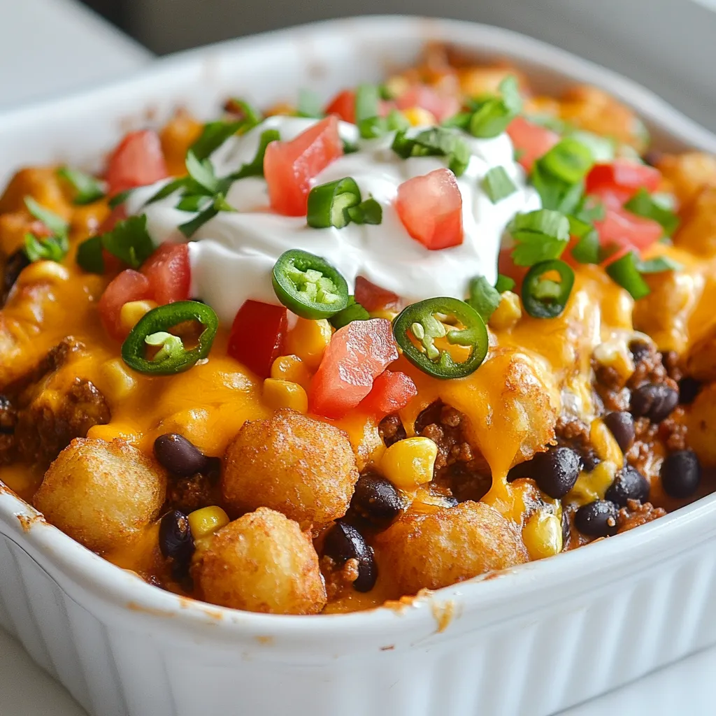 You can adjust the ingredients based on what you have at home. Instead of black beans, try pinto beans or chickpeas. If you prefer a milder taste, use less jalapeño or skip it altogether. For a dairy-free option, use vegan cheese and a dairy-free sour cream. You can use zucchini or sweet potatoes in place of tater tots for a healthier spin.