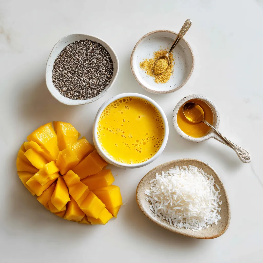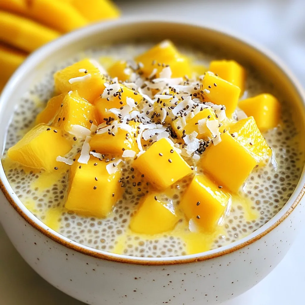 These items come together to create a creamy and flavorful pudding. The coconut milk adds a rich taste. The mango gives it a fresh, fruity flavor. Chia seeds make the pudding thick and fun to eat.