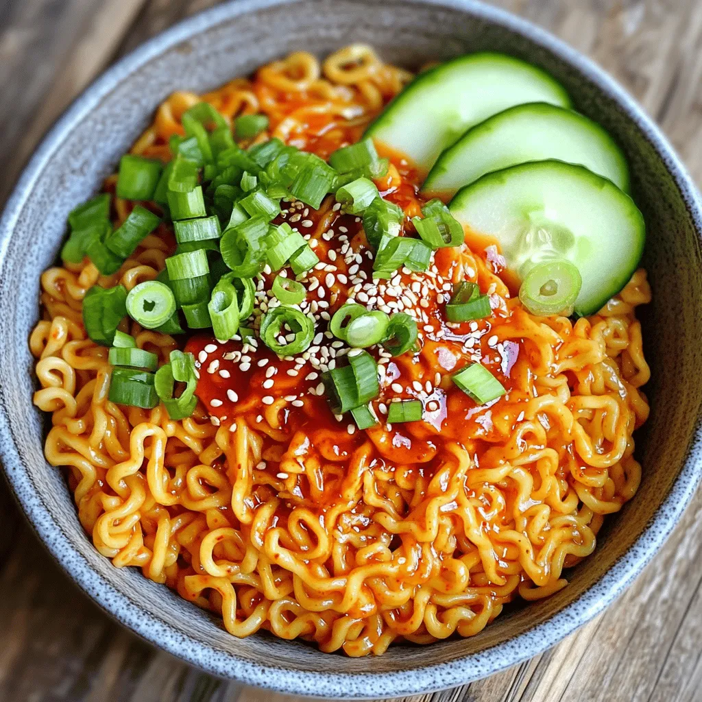 Add sliced green onions and sesame seeds for crunch. These toppings boost both flavor and texture. If you like a fresh taste, top your noodles with cucumbers or radishes. They add a nice contrast to the spicy sauce. You can also try adding peanuts for extra crunch. Experiment with different toppings to find your favorite mix.