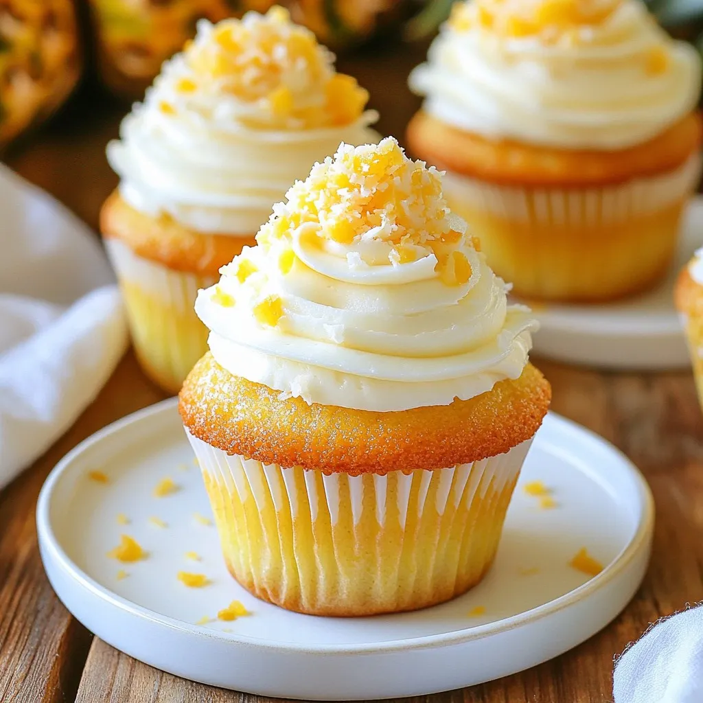 Deliciously moist cupcakes infused with pineapple and coconut flavors.