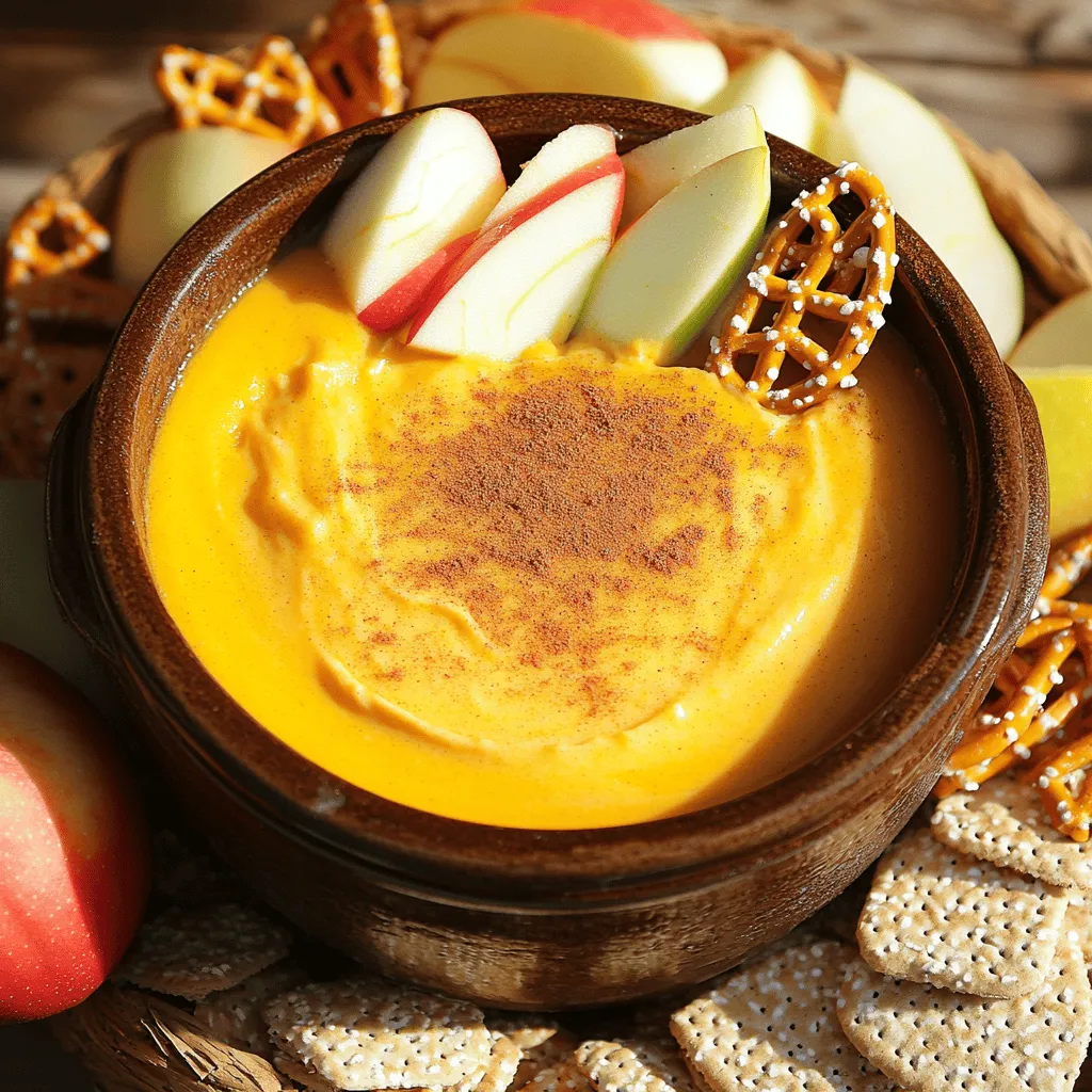 - 8 oz cream cheese, softened - 1 cup pumpkin puree - 1/2 cup brown sugar - 1/4 cup granulated sugar The main ingredients create the base of your dip. Cream cheese gives it a rich, smooth texture. Pumpkin puree brings warmth and autumn flavors. Brown sugar adds a deep sweetness, while granulated sugar balances the mix. - 1 tsp vanilla extract - 1 tsp ground cinnamon - 1/2 tsp ground nutmeg - 1/4 tsp ground ginger - Pinch of salt Spices and flavorings enhance the taste of your fondue. Vanilla extract adds sweetness and depth. Ground cinnamon gives warmth, while nutmeg and ginger add a nice kick. Don’t forget the pinch of salt; it brings all the flavors together. - 1/4 cup heavy cream - Dipping options: graham crackers, apple slices, pretzel bites Heavy cream makes your fondue creamy and smooth. For dipping, you can use graham crackers for crunch, apple slices for freshness, or pretzel bites for a salty contrast. These options make your fondue fun and interactive. - Start by gathering your ingredients: cream cheese, pumpkin puree, brown sugar, granulated sugar, and vanilla extract. - In a mixing bowl, combine the softened cream cheese with pumpkin puree. Add both sugars and vanilla extract. - Use a hand mixer or whisk to blend everything until it is smooth and creamy. - Next, add ground cinnamon, nutmeg, ginger, heavy cream, and a pinch of salt. - Mix again until all the ingredients blend well. You want a silky consistency that looks inviting. - Now, transfer the mixture to your slow cooker. Spread it evenly across the bottom. - Cover the slow cooker with its lid and set it to low heat. - Cook for about 2 hours. This allows all the flavors to meld together beautifully. - It is important to stir the mixture every 30 minutes. This helps it melt evenly and prevents sticking. - After the cooking time, check the consistency. It should be smooth and dippable. - If it feels too thick, stir in a little more cream. This gives you the perfect texture for dipping. To get the right texture for your pumpkin cheesecake fondue, pay close attention to the heavy cream. If you find your dip too thick, slowly stir in a little more heavy cream. This will give it that smooth and dippable quality you want. Always check the consistency before serving. Avoid overheating the fondue. Cooking on low heat is key. Stir gently every 30 minutes to keep it even. If you let it cook too long, it can harden or burn. You want it silky and rich, not dried out. Want to kick up the flavor? Try adding more spices. A little extra cinnamon or nutmeg can enhance the fall vibes. If you love a specific spice, don’t hold back! You can also infuse more flavor with different extracts. For example, try almond extract for a unique twist. Just a few drops can make a big difference in taste! When it comes to serving, think outside the box. Use a fun bowl or a mini pumpkin for a seasonal touch. You can even sprinkle some cinnamon on top for a nice look. For dipping, choose seasonal items. Graham crackers, apple slices, and pretzel bites work great. You can even add some marshmallows for a sweet treat. The more variety, the more fun for everyone! {{image_2}} You can mix up the taste of your pumpkin cheesecake fondue. Here are two fun ideas: - White Chocolate Pumpkin Cheesecake Fondue: Swap half the cream cheese with melted white chocolate. This gives a sweet and creamy twist. It tastes rich and pairs well with fruit. - Maple Pecan Cheesecake Fondue: Add 1/4 cup of maple syrup and 1/2 cup of chopped pecans. This gives a nutty flavor and adds a nice crunch. The maple syrup enhances the fall vibe. You can easily adapt this recipe for different diets. Here are some options: - Gluten-Free Options: Use gluten-free dippers like rice crackers or fresh fruit. Make sure any extras, like cookies, are gluten-free as well. - Dairy-Free Alternatives: Replace cream cheese with dairy-free cream cheese and use almond or coconut milk instead of heavy cream. This way, you can enjoy the fondue without dairy. Pair your fondue with tasty dippers. Here are some great ideas: - Ideal Pairings with Dipping Ingredients: Fresh apple slices, graham crackers, and pretzel bites work well. You can also try marshmallows or shortbread cookies for a sweet touch. - Alternative Serving Methods: For a fun twist, serve the fondue in a hollowed-out pumpkin. This not only looks great but adds a bit of pumpkin flavor too. To keep your pumpkin cheesecake fondue fresh, let it cool first. Once cool, place it in an airtight container. This helps keep the flavors intact. The fondue should be stored in the fridge. Make sure to use it within three to four days for the best taste. When reheating, use a slow cooker or microwave. If using a microwave, heat it in short bursts. Stir in between to avoid hot spots. If it seems too thick, add a splash of heavy cream. This helps to regain that smooth, creamy texture. Remember, gentle heating is key to keeping it delicious. The fondue lasts about four days in the fridge. For the best flavor, eat it fresh. After four days, the taste may change. You may still eat it, but the quality might not be the same. If you want to enjoy it longer, consider freezing it. Just make sure to thaw it slowly in the fridge before reheating. Yes, you can use different cheeses. Here are some options: - Neufchâtel cheese: This cheese has a similar taste but less fat. - Mascarpone: It adds a rich flavor and creamy texture. - Ricotta cheese: It offers a lighter texture and taste. Just make sure to soften any cheese you choose. This helps blend the mix smoothly. You can make this dip vegan by swapping a few ingredients. Here are some tips: - Use vegan cream cheese: Many brands offer great options. - Replace heavy cream with coconut cream or almond milk. This keeps it creamy. - Use maple syrup or coconut sugar instead of brown and granulated sugar. These swaps maintain the yummy taste while keeping it plant-based. Choosing the right dippers makes this dip more fun! Here ar
