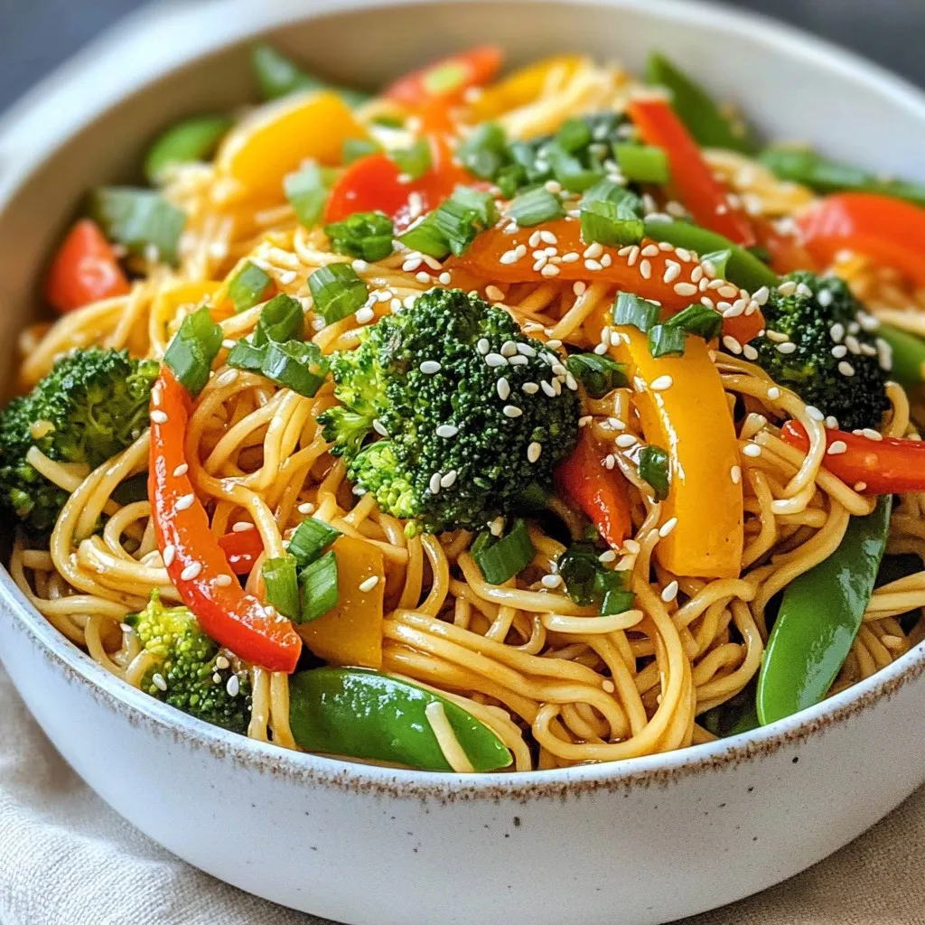 Looking for a quick and delicious meal? Try this Sesame Garlic Noodle Stir Fry! This easy noodles recipe features vibrant veggies and a savory sauce, making it a perfect vegetable stir fry recipe. Enjoy Asian inspired noodles packed with flavor in just 20 minutes! It's a quick vegetarian stir fry that will impress your family and friends. Save this recipe for your next dinner! #SesameGarlicNoodles #EasyNoodlesRecipe #VegetableStirFryRecipe #QuickVegetarianStirFry