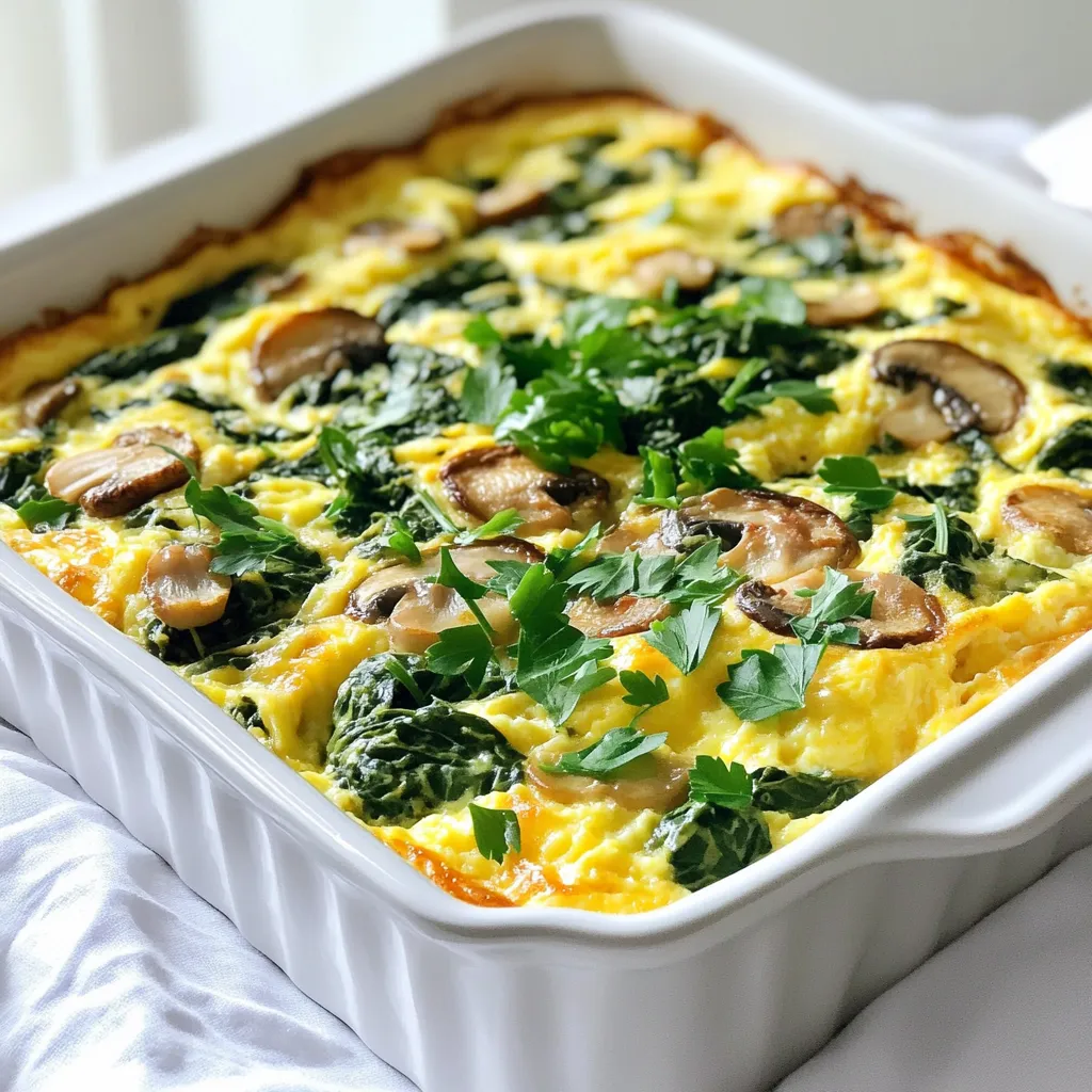 Using fresh herbs for garnish adds a vibrant touch. Parsley or chives work great. These ingredients make your Savory Spinach Mushroom Egg Bake both simple and tasty.