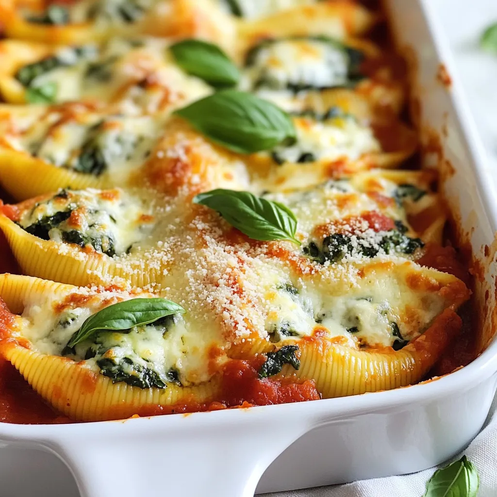 Each ingredient plays a key role in flavor and texture. Jumbo pasta shells are perfect for holding the filling. Ricotta cheese gives creaminess. Fresh spinach adds color and nutrients. Mozzarella and Parmesan provide a rich, cheesy taste. The egg helps bind the filling. Garlic powder and onion powder bring depth. Italian seasoning adds warmth. Salt and pepper enhance all the flavors. Marinara sauce ties everything together, while basil adds a fresh touch. With these ingredients, you’ll create a dish that feels both comforting and gourmet.