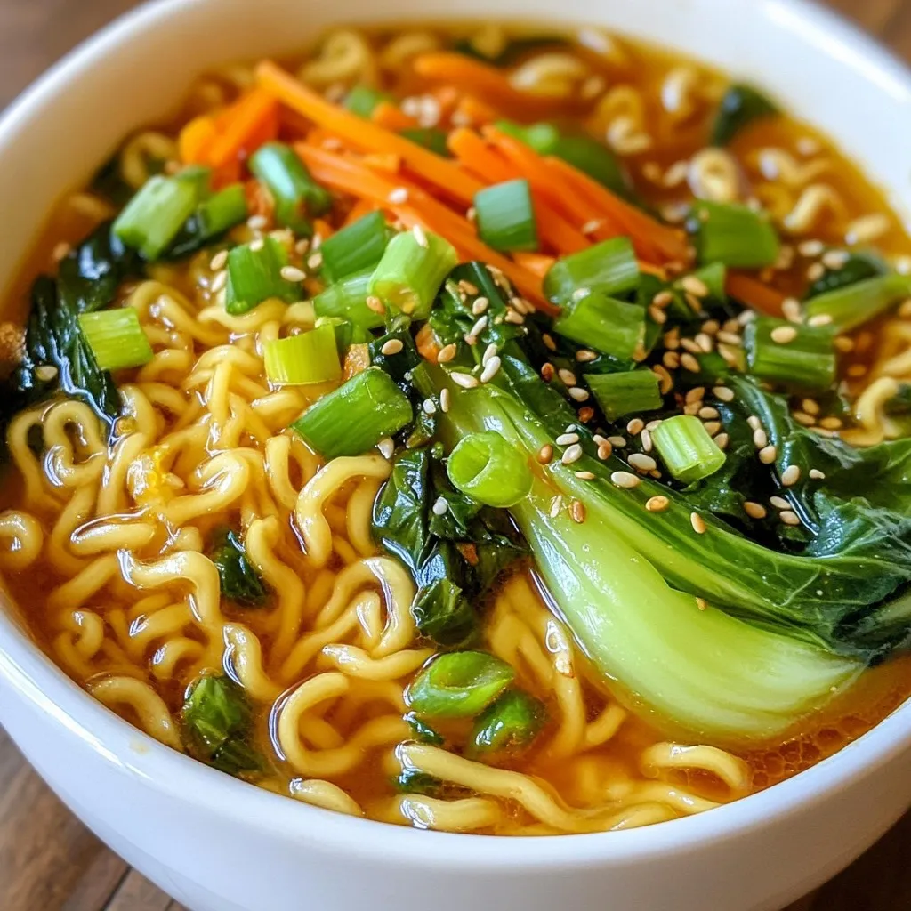 - 200g fresh ramen noodles Using fresh ramen noodles makes a big difference. They cook quickly and taste great. Look for them in the refrigerated section of your grocery store. If you can't find fresh ones, dry noodles work too, but adjust the cooking time. - 1 cup bok choy, chopped - 1 carrot, julienned - 4 cloves garlic, minced - 1 teaspoon ginger, grated - 1 red chili pepper, finely sliced (adjust to taste) Bok choy adds crunch and nutrition. Carrots bring sweetness and color. Garlic and ginger give a strong base flavor. The red chili pepper adds the spice. You can adjust the amount based on your heat preference. - 2 tablespoons vegetable oil - 2 cups vegetable broth - 2 tablespoons soy sauce - 1 tablespoon miso paste - 1 teaspoon sesame oil - 2 green onions, sliced (for garnish) - 1 tablespoon sesame seeds (for garnish) Vegetable oil helps sauté the garlic. The broth adds depth to your dish. Soy sauce and miso paste boost the umami taste, while sesame oil gives a nutty hint. Green onions and sesame seeds make perfect garnishes. They add flavor and look nice in the bowl. {{ingredient_image_1}} To start, boil a pot of water. Once it bubbles, add 200g of fresh ramen noodles. Cook them for 3-4 minutes. After cooking, drain the noodles and set them aside. This step gives you the perfect base for your dish. In a large saucepan, heat 2 tablespoons of vegetable oil over medium heat. Then, add 4 cloves of minced garlic, 1 teaspoon of grated ginger, and 1 finely sliced red chili pepper. Sauté these for about 2 minutes. You want the garlic to turn golden and fragrant. This forms the heart of your flavor. Next, pour in 2 cups of vegetable broth. Add 2 tablespoons of soy sauce and 1 tablespoon of miso paste. Stir well to mix everything together. Bring this mixture to a light boil. This broth is what makes your ramen rich and tasty. Now it’s time for the veggies! Toss in 1 cup of chopped bok choy and 1 julienned carrot. Let them cook for 3-4 minutes. You want them tender but still bright. They add color and crunch to your ramen. Lower the heat and gently add the cooked ramen noodles to the broth. Drizzle in 1 teaspoon of sesame oil. Stir carefully to coat the noodles in the spicy broth. Serve the ramen in deep bowls, garnished with sliced green onions and a sprinkle of sesame seeds. This makes the dish look and taste amazing! Start with good broth. Use vegetable broth for a rich base. Heat it gently with soy sauce and miso paste. This mix adds depth and umami. For more flavor, let the broth simmer longer. This brings out all the tastes. You can add a splash of sesame oil for extra aroma. It makes the broth shine. Want it spicier? Add more red chili pepper. You can use fresh slices or chili flakes. If you prefer less heat, use fewer chili slices. Removing seeds from the chili also helps. Another tip is to add a dash of sugar. It balances the heat and gives a nice flavor twist. Serving is key to a great meal. Use deep bowls to show off your ramen. Make sure to layer the colorful vegetables on top. This makes it look appealing. A sprinkle of green onions adds a fresh touch. Finish with sesame seeds for crunch. A drizzle of sesame oil on top enhances the aroma. Enjoy your beautiful bowl! Pro Tips Adjust Spice Level: Feel free to modify the amount of red chili pepper based on your heat preference. Start with less and add more if desired! Fresh Ingredients: Using fresh garlic and ginger will greatly enhance the flavor of your broth. Avoid powdered versions for the best results. Vegetable Variations: You can substitute bok choy and carrots with other vegetables like bell peppers or snap peas for a different flavor profile. Make it a Meal: Add protein such as tofu, chicken, or shrimp to make this dish more filling and nutritious. {{image_2}} You can easily boost your spicy garlic ramen with protein. Chicken, shrimp, or tofu work well. For chicken, use cooked, shredded pieces. For shrimp, add them when the broth is hot. Tofu adds a nice texture. Just cube it and sauté it with garlic. Each choice gives a different flavor and texture. Feel free to change the veggies in your ramen. Instead of bok choy, try spinach or kale. Both are tasty and cook quickly. You can also add mushrooms for an earthy touch. Bell peppers or snap peas add sweetness and crunch. Mix and match based on your taste or what you have. To make this dish vegan, skip the miso paste. Use a vegan broth and soy sauce. For gluten-free ramen, look for rice noodles or gluten-free pasta. These options keep the dish light and tasty. Always check labels to ensure your ingredients fit your needs. To keep your spicy garlic ramen fresh, let it cool first. Transfer it to an airtight container. You can store it in the fridge for 3 to 4 days. If you want to keep it longer, consider freezing it. When you're ready to eat, you can reheat the ramen on the stove. Pour the ramen and broth into a pot. Heat it over medium heat until it's hot. Stir occasionally to make sure it warms evenly. You can also use a microwave. Place the ramen in a microwave-safe bowl. Heat it in short bursts, stirring in between, until hot. If you want to freeze your ramen, separate the noodles and broth. The broth freezes well, but the noodles can get mushy. Store the broth in a freezer-safe container for up to 3 months. For noodles, you can freeze them for about a month. When you're ready to eat, thaw the broth overnight in the fridge. Reheat it, then add freshly cooked noodles for the best taste! It takes about 20 minutes to make spicy garlic ramen noodles. You spend 10 minutes prepping and 10 minutes cooking. The fresh ramen noodles cook fast, usually in 3-4 minutes. You can enjoy a delicious meal in no time. Yes, you can use instant ramen noodles. They work well if you are short on time. Just cook them according to the package instructions. Instant noodles will absorb flavors from the broth, making them tasty. You can use tahini or soy sauce as a substitute for miso paste. Tahini