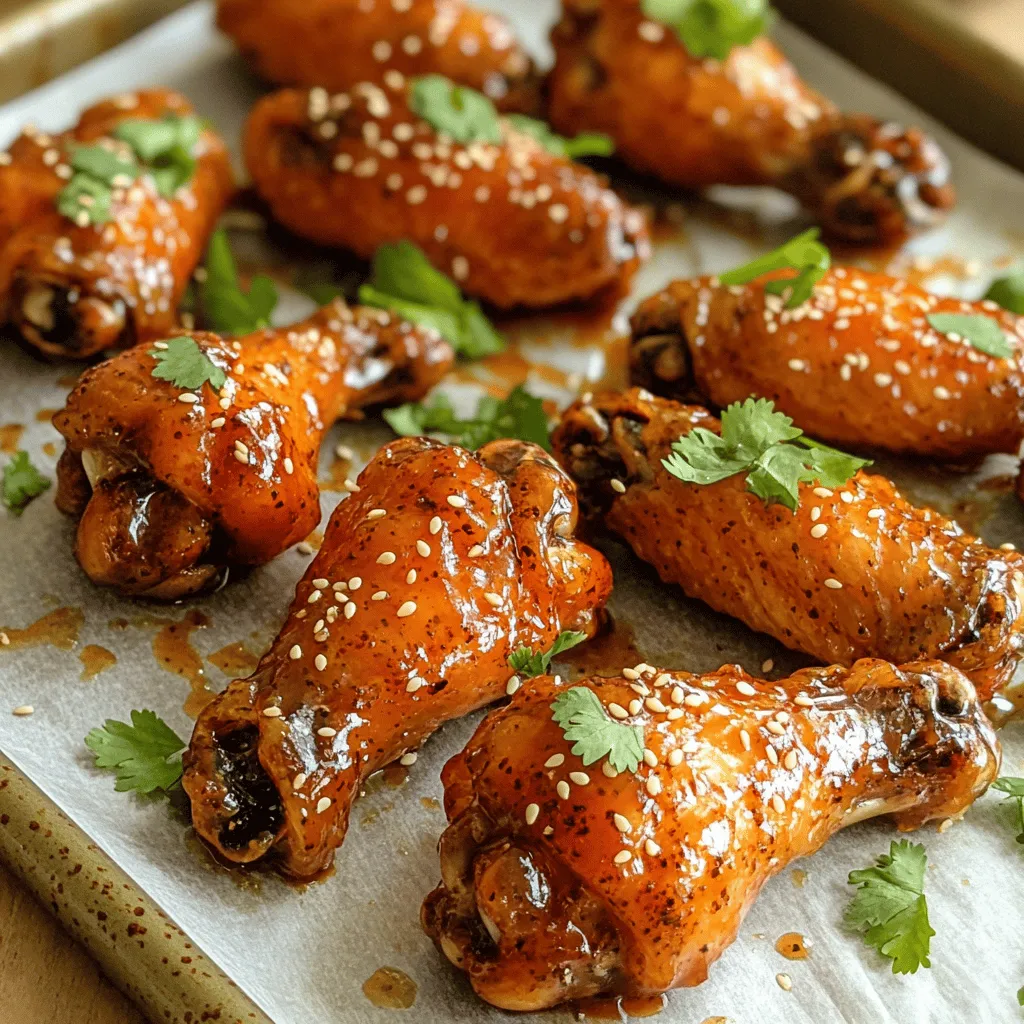 Now, arrange the wings on your lined baking sheet. Make sure they sit in a single layer. This way, they cook evenly. Bake them in the preheated oven for 30 to 35 minutes. Flip the wings halfway through cooking time. This helps them crisp up on both sides. If you want extra crunch, turn on the broiler for 2 to 3 minutes at the end. Just keep a close eye to prevent burning. When done, take them out and let them rest for a few minutes. Top with sesame seeds and fresh cilantro for a colorful finish.