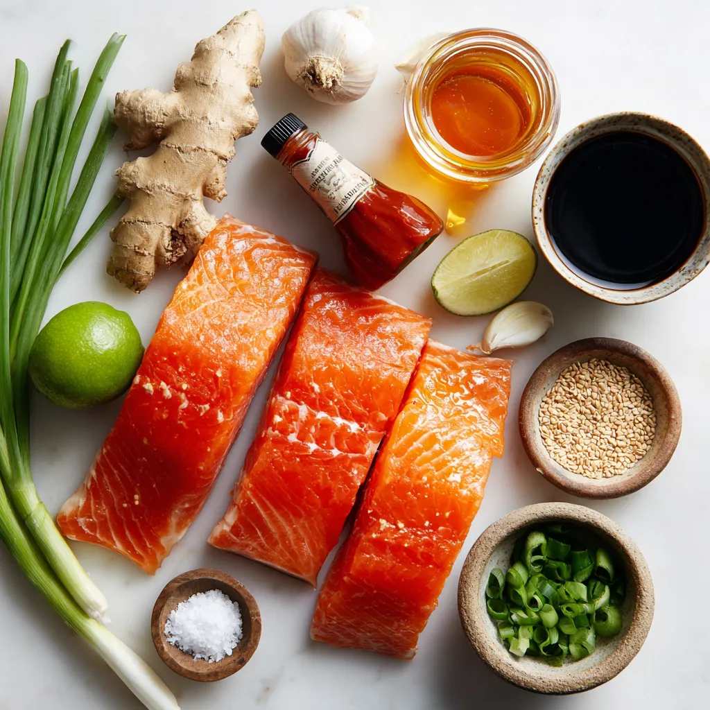 Each ingredient plays a key role in the flavor. The salmon gives richness, while honey adds sweetness. Sriracha brings heat, and soy sauce adds depth. Garlic and ginger provide zest. Lime juice brightens the dish, and sesame seeds add crunch. Green onions finish it off with freshness.