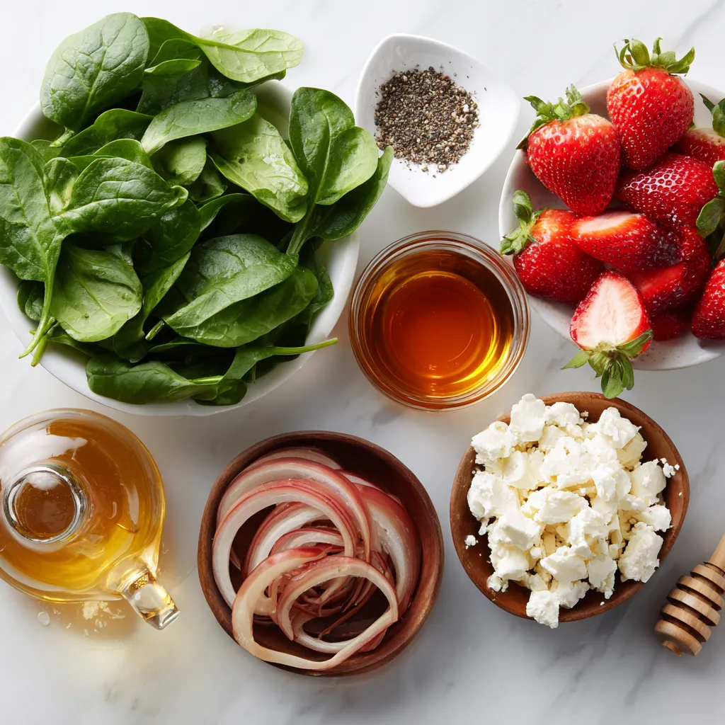 Gather all these ingredients, and you are ready to create a fresh and vibrant Strawberry Spinach Salad!