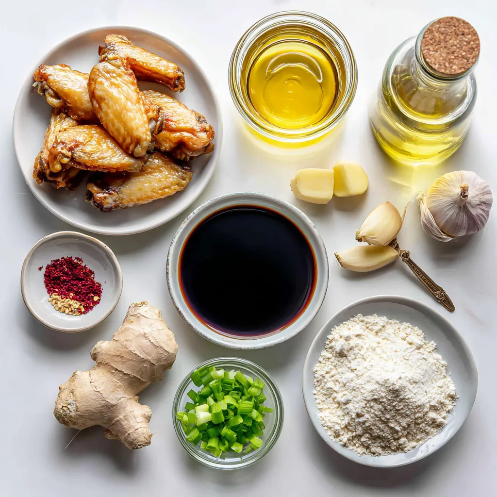 You need fresh chicken wings for this recipe. Choose wings that look plump and juicy. Next, gather your marinade components. Soy sauce gives a nice salty flavor. Honey adds sweetness, while garlic and ginger bring a kick. Sesame oil adds richness, and rice vinegar gives a hint of tang.