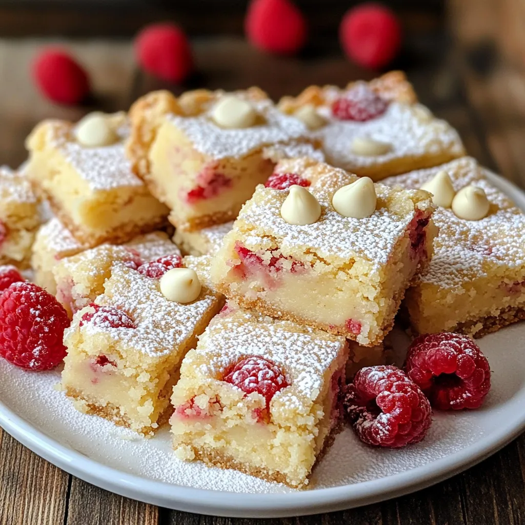 Deliciously sweet blondies with white chocolate and fresh raspberries.